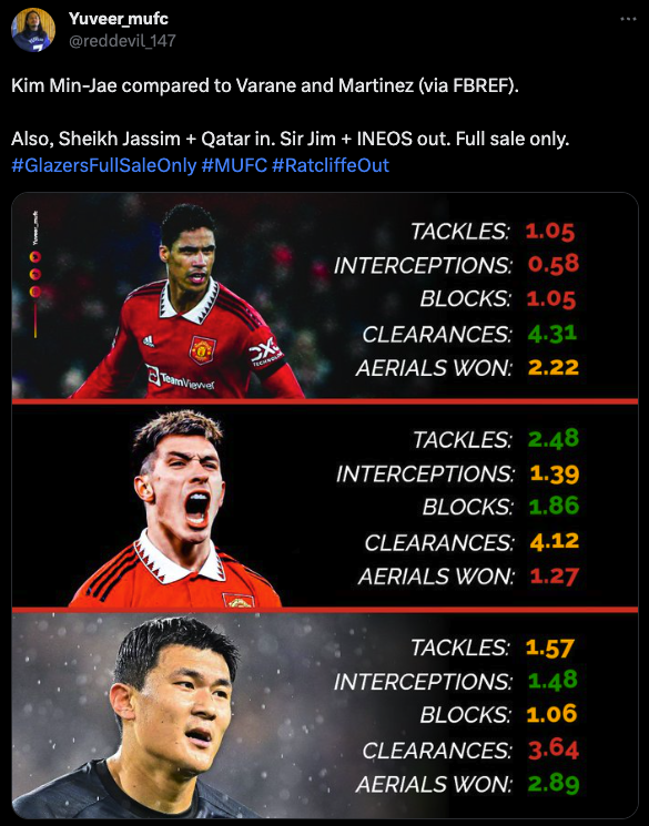 해외 트위터를 보면 국뽕을 빼고도 김민재가 얼마나 대단한 선수인지 확인할 수 있습니다. 맨유의 한 팬은 김민재에 대해 분석한 포스팅을 올렸습니다. 레알 마드리드 출신 정상급 수비수 바란보다 태클, 인터셉트, 블로킹, 공중볼 경함(Aerials won)에서 뛰어난 스탯을 보여줬습니다. 공중볼이 약점인 리산마와 합을 맞추면 맨유의 수비진은 더욱 탄탄해지리라 생각합니다. 위 사진의 트위터를 올린 맨유팬은 김민재의 장점으로 6가지를 꼽았습니다.
