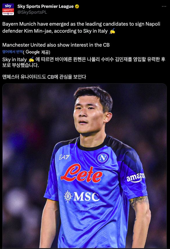 시즌이 종료되고 빠르게 '맨유-김민재' 영입설이 났던 것과 달리 아직 오피셜이 들리지 않고 있던 중, 김민재를 노리는 거대한 경쟁자가 등장합니다. 바로 독일 분데스리가의 왕 바이에른 뮌헨이었습니다. 이 소식을 들은 맨유 팬들은 맨체스터 유나이티드는 아이쇼핑만 하고 실제로 제대로 된 영입은 아무것도 이루지 못하고 있다며 한탄하고 있습니다.