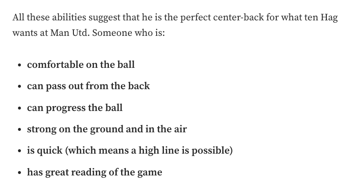 이 6가지를 종합해 보면 말 그대로 빌드업과 빠른 전개가 주를 이루고 있는 현대 축구에 필요한 수비수의 자질들을 모두 가지고 있습니다.