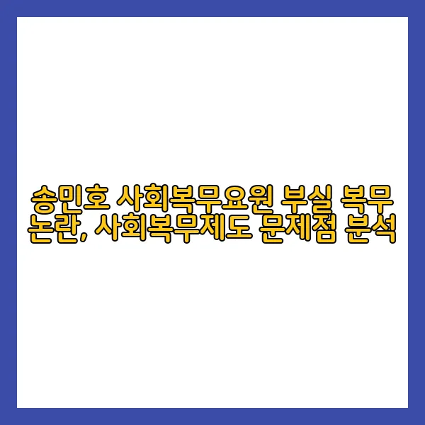 송민호 씨의 잦은 결근과 근무 태만 의혹은 사회복무요원 관리·감독 시스템의 부실함을 적나라하게 보여주었습니다. 이는 단순한 개인의 일탈을 넘어, 사회복무제도 전반의 신뢰도를 훼손하는 심각한 문제입니다. 대체 무엇이 문제였을까요? 🤔