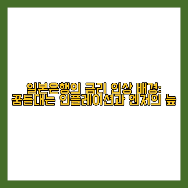 일본은행이 17년 만에 최고 수준인 0.5%로 기준금리를 전격 인상했습니다! 엔저 현상 완화와 물가 상승 억제를 위한 고육지책으로 해석되는 이번 결정, 과연 일본 경제에 어떤 파장을 불러올까요? 금리 인상 배경부터 향후 전망, 그리고 한국 경제에 미칠 영향까지, 지금 바로 자세히 알아보세요! (키워드: 일본은행, 기준금리 인상, 엔저, 물가 상승, 일본 경제)