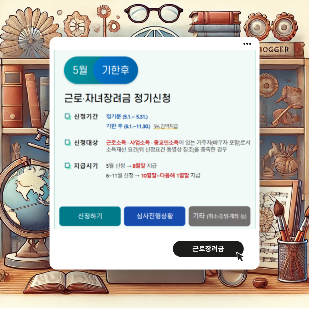 참고로 근로장려금은 매년 5월에 정기 신청을 받고 있어요. 혹시 올해 놓치셨다면 내년에는 꼭 신청하세요!