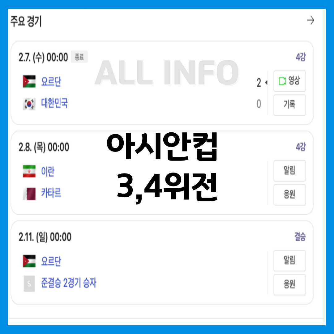 요르단 대한민국 축구 2024 카타르 아시안컵 34위전 없음